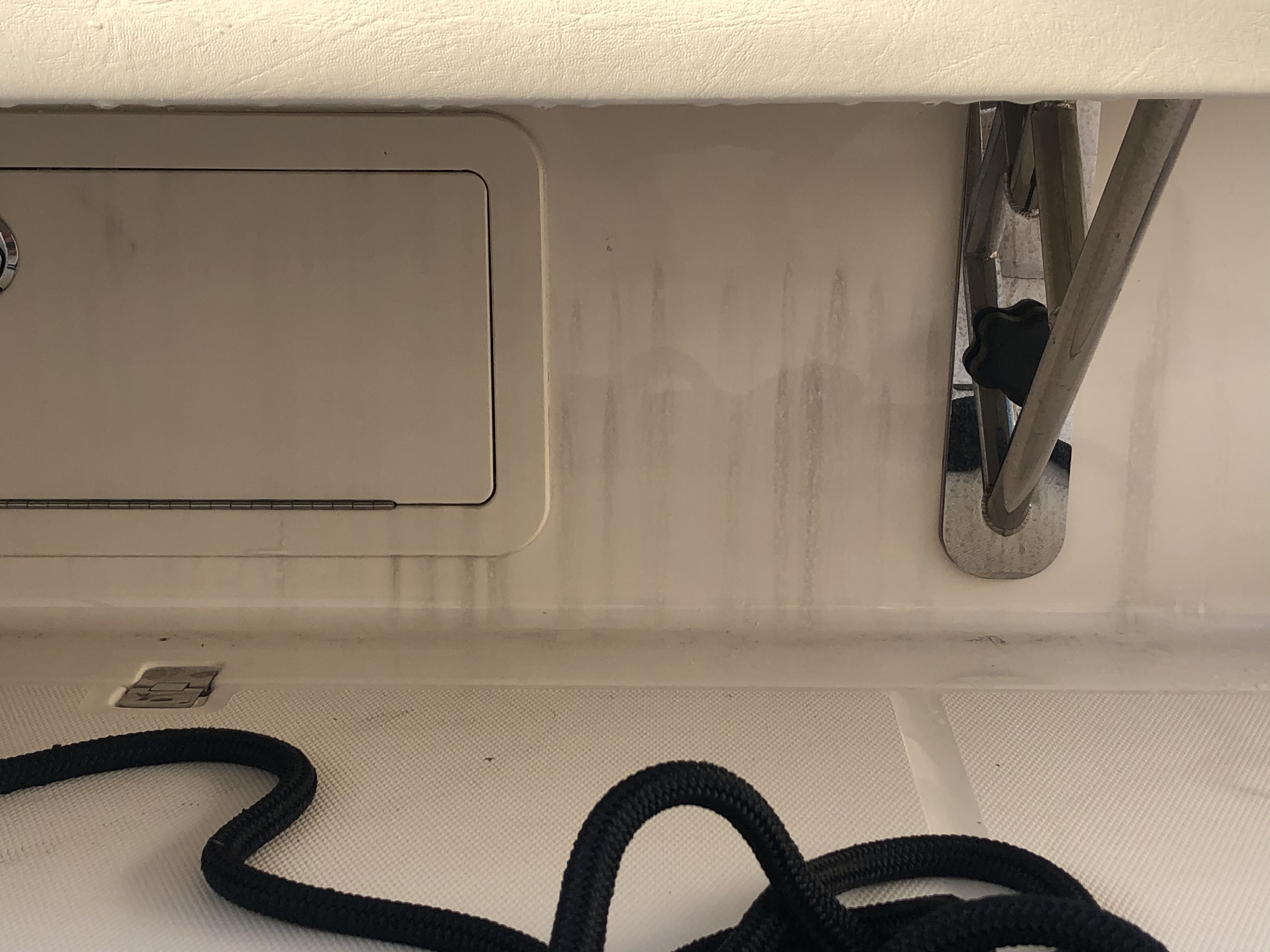 The primary areas we typically recommend for boat owners when restoring a used boat is the highly sun exposed sections. For instance, the Top of the T-Top and the brow on the forward section showed significant sun damage.