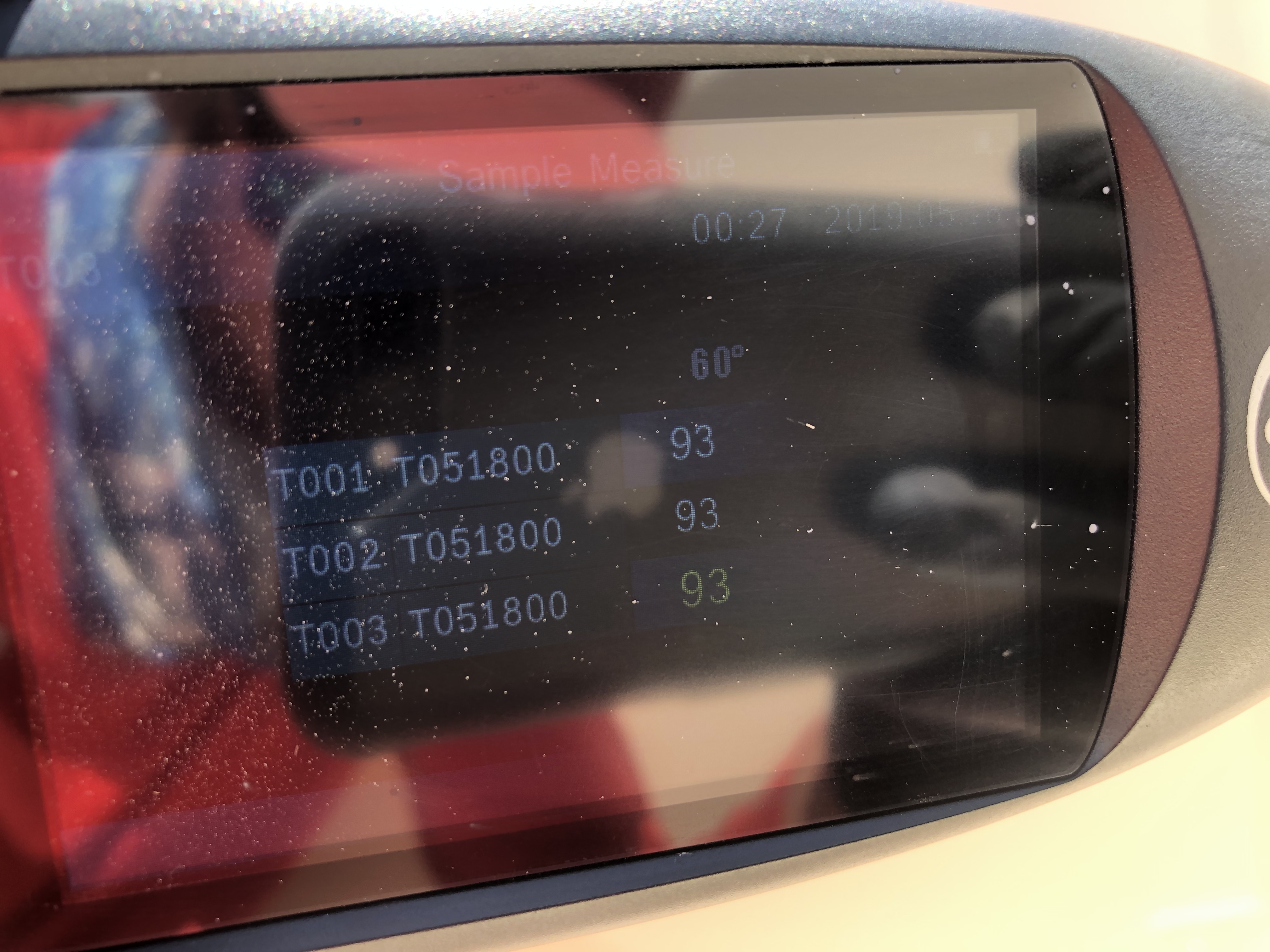 Typically, new gel coat will have gloss meter readings of 82 - 88. Even though the boat was only a few years old, the surface had significant sun damage and would require several prep steps in order to bring the surface back before applying the ceramic coating.