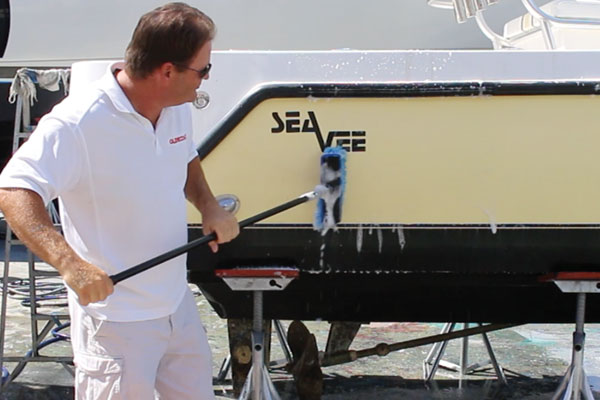 Washing the SeaVee boat with Glidecoat Nano Wash ensures the surface is completely clean and free of contaminates.